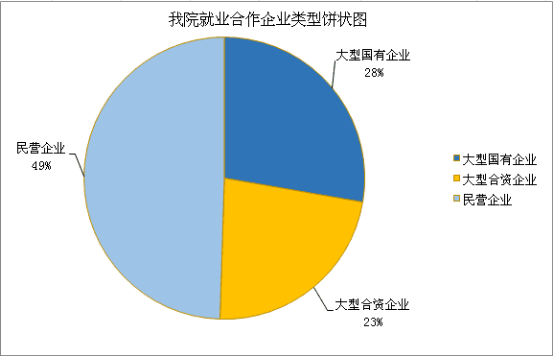 长期以来,由于学院毕业生具有良好的职业能力和较高的职业素质,一直深受用人单位欢迎。学院合作的就业单位有400余家,紧密合作的就业单位有200余家。其中国有大型企业占到42%,合(外)资企业占到32%,民营企业占到26%