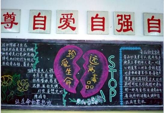 此次的教育活动以班为单位开展,主要以陕禁毒办【2016】100号文件精神要求为依据,通过集体学习、召开主题班会、办理主题黑板报、观看相关禁毒影片和书写心得体会等形式进行。通过介绍毒品的危害,宣传毒品的有关知识及国家有关禁毒的法律法规,以实例说明感染者对社会、他人、个人及家庭造成的危害,让学生近距离的了解毒品,认清毒品危害,消除了在毒品认识上的误区,让“远离毒品,走健康人生路”的观念深入人心,同时在一定程度上提高了师生对毒品的防范能力,达到了预期的效果。