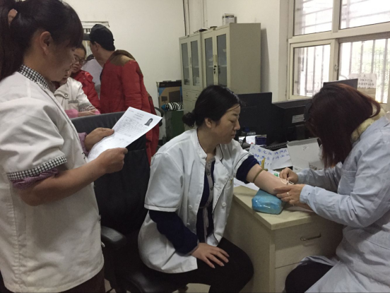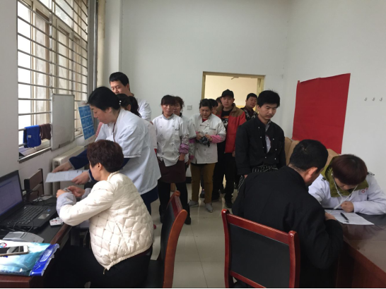 为了保证学院师生们的饮食安全,2017年3月15日上午,学院经营管理处特邀咸阳市防疫站的工作人员,为学院食堂餐饮从业人员、管理人员进行健康检查,统一办理健康证。