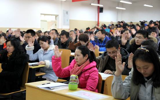 学院副院长、工会主席杨广明作了题为《牢记使命,砥砺奋进,使工会成为有吸引力的“职工之家”》的工会工作报告。报告从工会组织建设、民主管理、人文关怀、劳动竞赛、文体活动、技能帮扶等方面全面总结了2017年度工会工作,明确了2018年继续坚持以人为本的工作理念,着力提高学院教职工整体素质水平,进一步强化服务意识,大力推进民主建设,积极为教职工营造和谐温馨的工作环境。