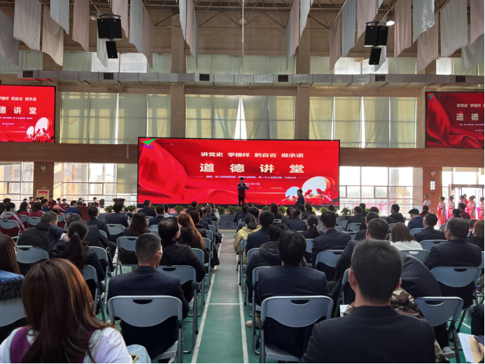 2021年是中国共产党成立100周年,也是实施“十四五”规划的开局之年,为积极培养和践行社会主义核心价值观,加强学院师生的社会公德、职业道德、家庭美德和个人品德建设,引导广大师生认真履行央企责任使命,争做道德模范,根据学院党建带团建工作要求,西安技师学院于2021年11月17日下午在文体活动中心举办“讲党史 学榜样 躬自省 做承诺”——主题道德讲堂活动。党委书记范孝红,党委副书记、纪委书记罗文科,党委副书记、院长冯小平,院长助理、党群纪检处处长姚永乐及学院全体在岗党员、青年团员代表200余人参加了活动。