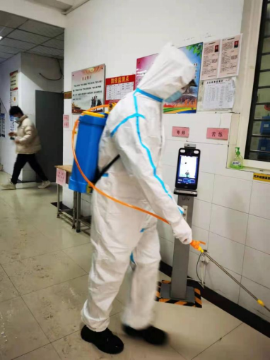 在学管中心的统筹安排下,各中队教官、学生志愿者逐一对4栋公寓楼进行消杀。因此次消杀时间区域集中,消杀液浓度配比高,为确保消杀效果,防止消杀液对物品的腐蚀,保护学生安全健康,各系班主任、教官提前通知学生将宿舍内床底下、地面放置的所有物品搬离,箱子等放置在柜子上面,鞋放置在鞋架上或柜子里,食品等封存保护好,地面上不得有物品摆放,地面垃圾须清理干净,关闭窗户,贵重物品保存好。在规定消杀时间10分钟,所有学生有序离开公寓楼。随后,该时段公寓楼封闭,学生不进入,相关人员对学生公寓所有宿舍内地面、门把手,以及楼道等公共区域地面,进行了全面消杀。消杀结束后,学生们返回宿舍,及时打开窗户通风。
