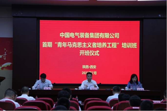 2022年7月28日,中国电气装备集团有限公司首期青年马克思主义者培养工程培训班(以下简称“青马班”)在西安技师学院开班。中国电气装备集团有限公司党委副书记裴振江,中国西电集团有限公司党委常委、纪委书记孙鹏出席开班仪式。开班仪式由中国电气装备集团有限公司党委工作部部长、团委书记武艳茹主持。