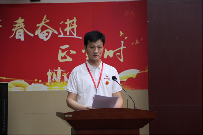 来自山东电工电气的朱剑锋同志代表全体青马班学员作郑重承诺,号召大家团结协作、携手同行,深入融入、共同提升,确保高质量完成各项学习任务。在今后的工作中为集团公司加快建设世界一流企业贡献更大力量,以优异成绩迎接党的二十大胜利召开。