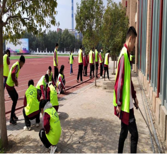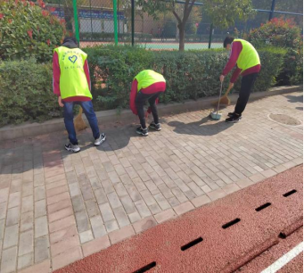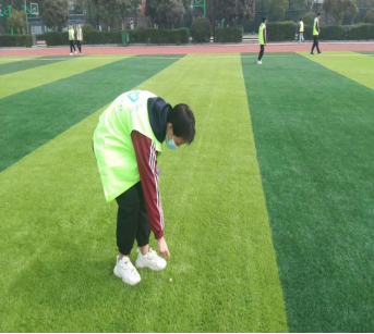 活动开始,志愿者们身穿绿色马甲,准时在操场集合,做好准备。在社团联合会负责人对本次活动安排后,志愿者们立刻前往不同的区域,认真捡拾跑道和绿地上的烟头、塑料瓶、废纸等垃圾。志愿者们仔细清理,将垃圾分类放入垃圾箱。清洁工作有条不紊地进行着,没过多久,整个操场焕然一新。