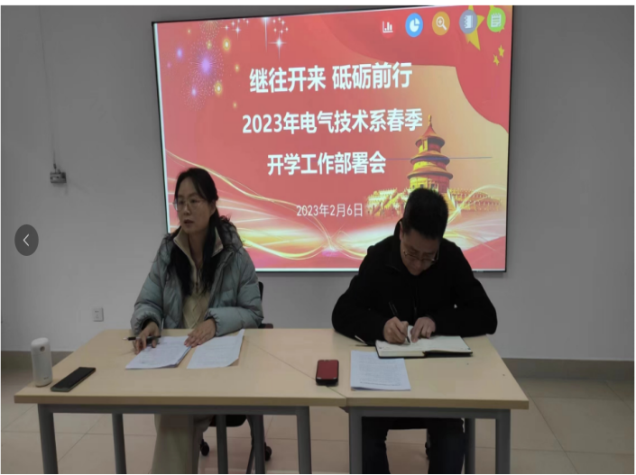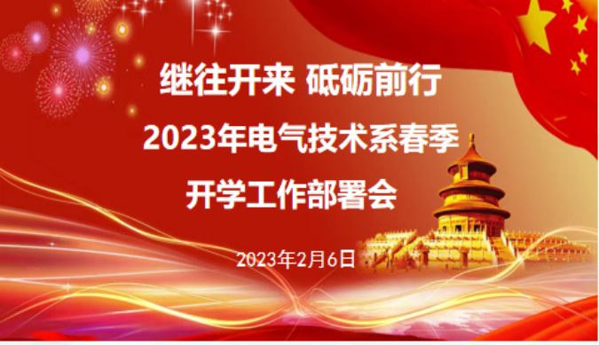 为进一步统一思想,明确2023年度工作目标,确保各项教育教学工作有序、顺利推进, 2月6日上午,电气技术系组织召开2023年开学工作部署会,会议由电气技术系党支部书记、副主任门新会主持会议,系部全体教职工参会。