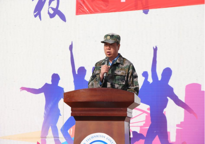 军训团负责人古兆强向全体参训学生进行动员,鼓励学生通过军训提高政治思想觉悟,增强国防观念,增强集体主义精神和组织纪律观念,磨练意志,顺利完成军训任务。