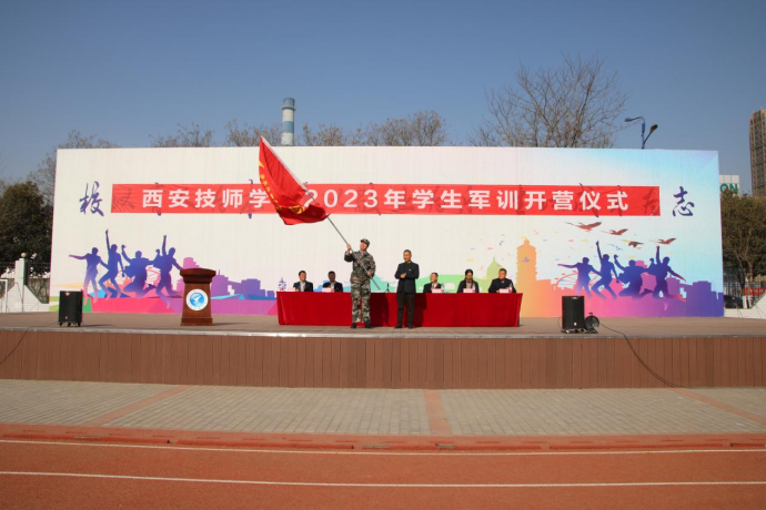 学院党委书记、院长冯小平向军训团授旗,并宣布2022级学生军训开始。红色的旗帜随风飘扬,军魂已在学生心中萌发。