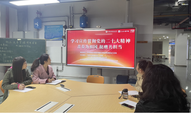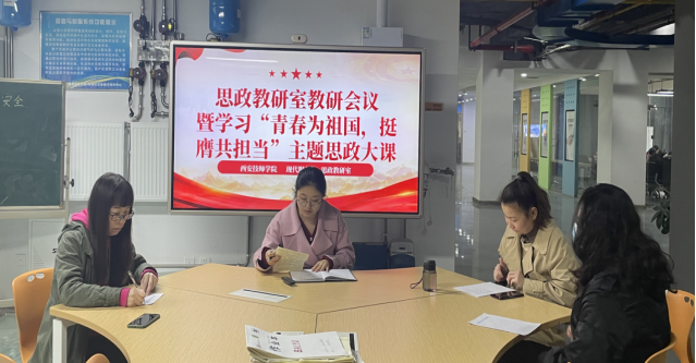 为进一步加强学院思政教师队伍建设,提高思政课教师思想政治理论、创新思政教学以及思政建设模式水平,3月23日下午,现代服务系思政教研室召开了教研例会暨观看学习由人民网主办的“青春为祖国,挺膺共担当”主题思政大课。会议由思政教研室主任韩璟主持。