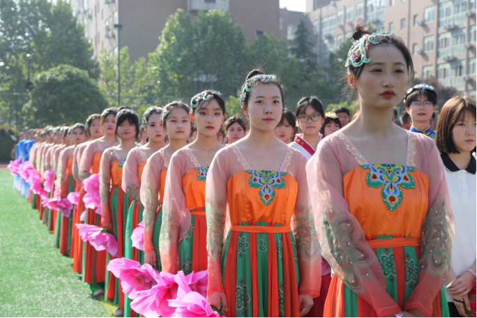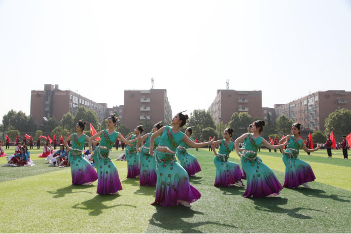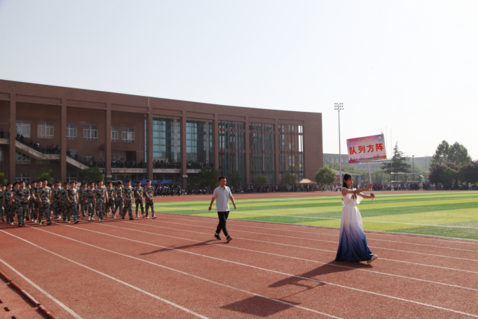 入场式开始后,国旗护卫队及会徽队、各系青年学生代表队、裁判员代表队方阵迈着整齐的步伐,喊着嘹亮的口号以饱满的精神状态行依次走过观礼台。一方阵,一主题,师生们用特色鲜明的方阵表演展示了全体师生爱国爱党爱校的真挚情感和昂扬向上的精神风貌。