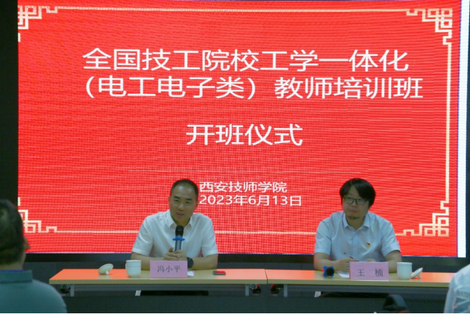 6月13日上午,全国技工院校工学一体化(电工电子类二级)教师培训班在我院顺利开班。学院党委书记、院长冯小平,培训中心主任王楠以及本期工学一体化(电工电子类)教师培训班学员参加了开班仪式。
