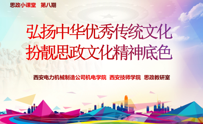 通过本期的思政小课堂,我们一起了解到了文化是一个国家、一个民族的灵魂。中华优秀传统文化是中华民族的精神命脉,弘扬优秀传统文化是当代中国文化自信的内在需要,传承中华文化,是我们每个人的担当和职责。校园作为青年人才培养主阵地,思政教育必须融入文化自信,承担起育人与创新的历史使命。学院专门打造了以思政引领、德技并修和技能报国为主题的思政讲堂,让同学们在潜移默化中接受思想政治教育,感悟中华优秀传统文化的魅力,增强同学们内在的文化认同感、自信心,让传统文化浸润心灵,让立德树人落地有声。我们要时刻牢记习近平总书记嘱托“在新的起点上继续推动文化繁荣、建设文化强国、建设中华民族现代文明”。