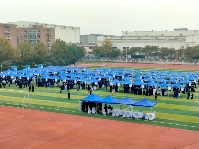 启动仪式后,双选活动在学院运动场全面铺开。本次双选会精准契合市场需求与学院育人定位,吸引90家优质企业参会,涵盖输配电设备制造、航空航天、材料工程、汽车、物业等重点行业,显示了市场对技能型人才的旺盛需求及对学院培养质量的高度认可。