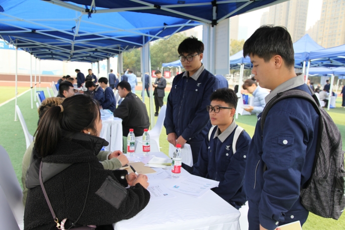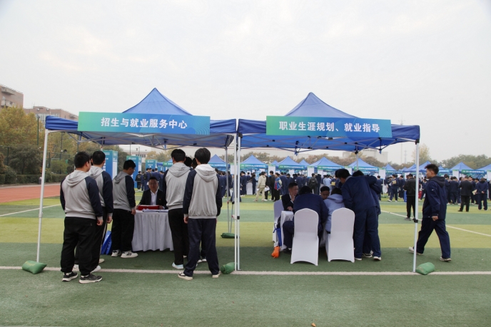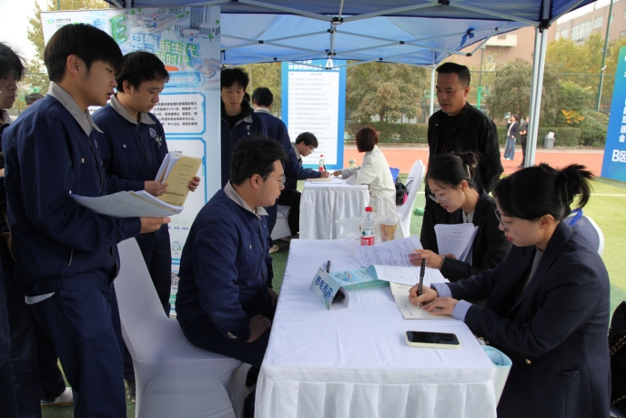 启动仪式后,双选活动在学院运动场全面铺开。本次双选会精准契合市场需求与学院育人定位,吸引90家优质企业参会,涵盖输配电设备制造、航空航天、材料工程、汽车、物业等重点行业,显示了市场对技能型人才的旺盛需求及对学院培养质量的高度认可。